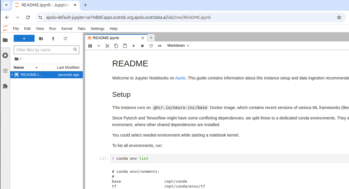 Jupyter Apolo is an application designed to facilitate interactive computing and data analysis. It supports both Jupyter Lab and Jupyter Notebook interfaces, providing a flexible and powerful environment for data scientists and analysts to develop and share their work. With seamless integration into Apolo's ecosystem, it leverages Apolo Storage for storage and MLFlow for experiment tracking, making it an ideal choice for collaborative and scalable data science workflows.