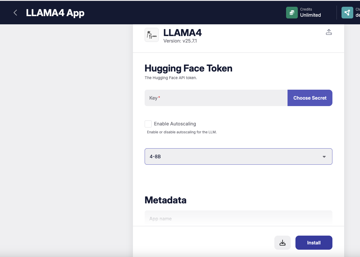 You can deploy Llama4 on the Apolo platform using the **`LLAMA4`** app. Apolo automates resource allocation, persistent storage, ingress, GPU detection, and environment variable injection, so you can focus on model configuration.