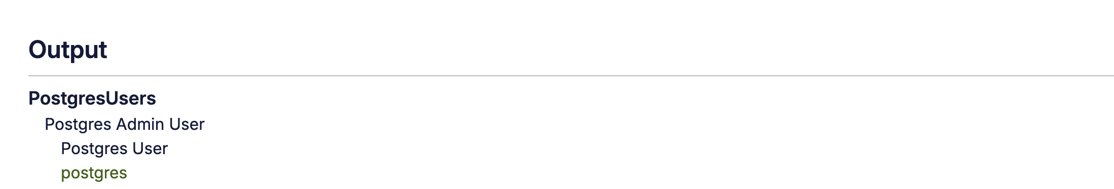 **Postgres** username is reserved and will be returned in the outputs.\\