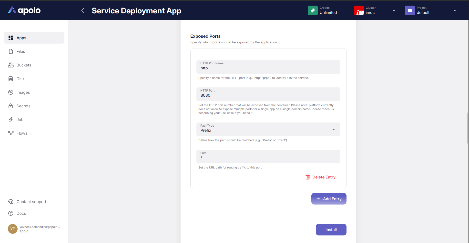 ### Installing with Apolo Console