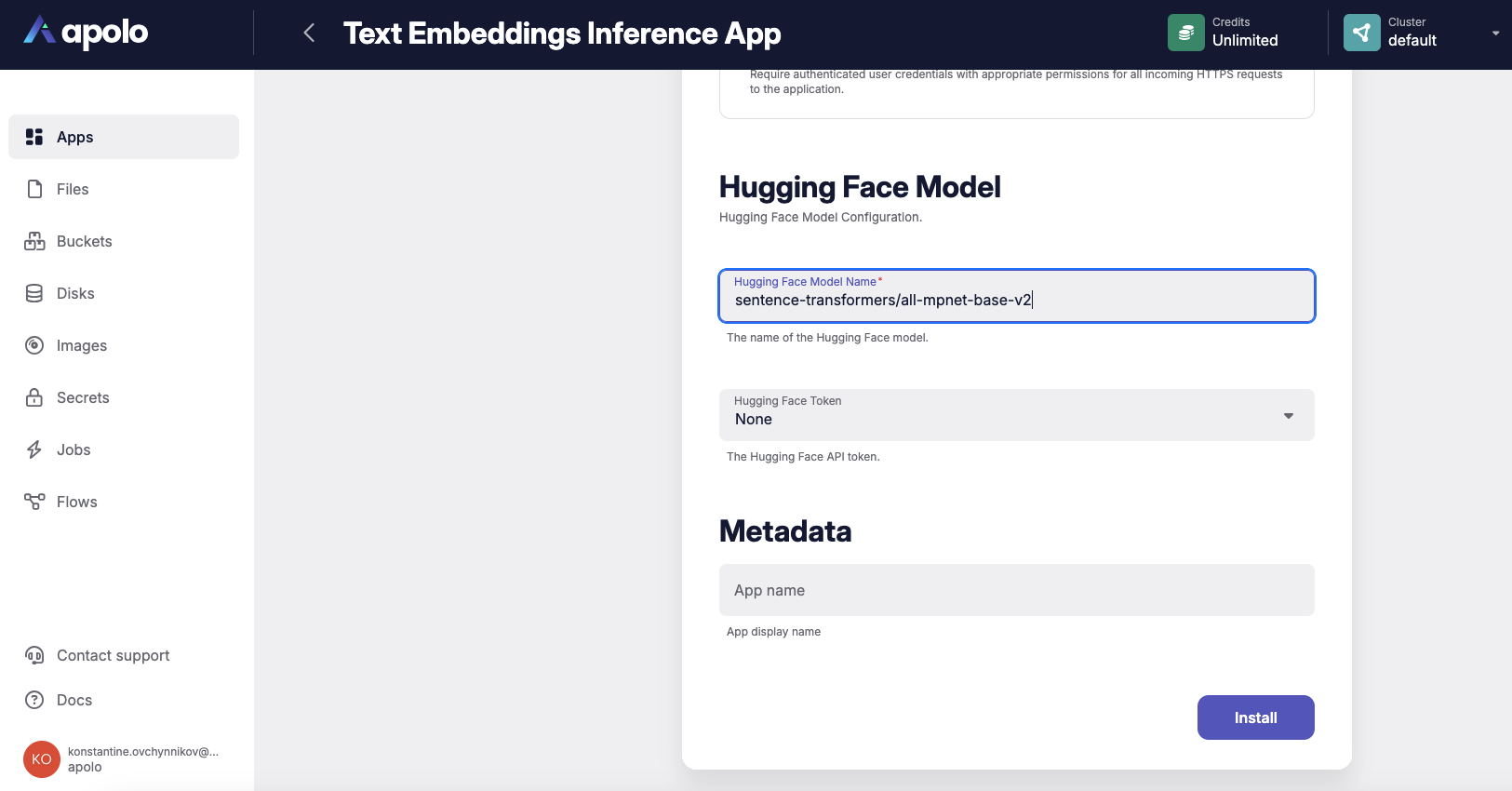 * [Apolo Hugging Face application management](https://docs.apolo.us/index/apolo-console/apps/installable-apps/available-apps/hugging-face)