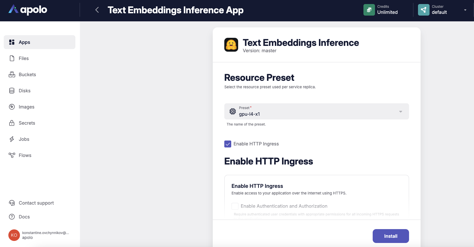 * [Text Embedding Inference CLI installation](https://docs.apolo.us/index/apolo-concepts-cli/apps/installable-apps/available-apps/text-embeddings-inference)
