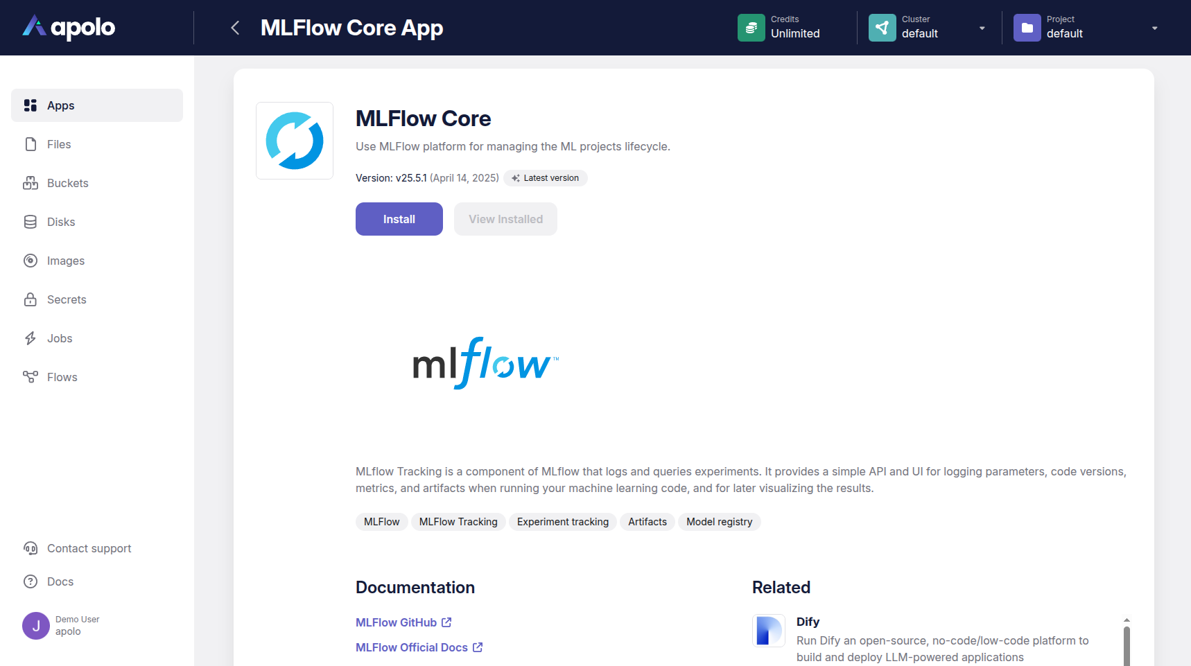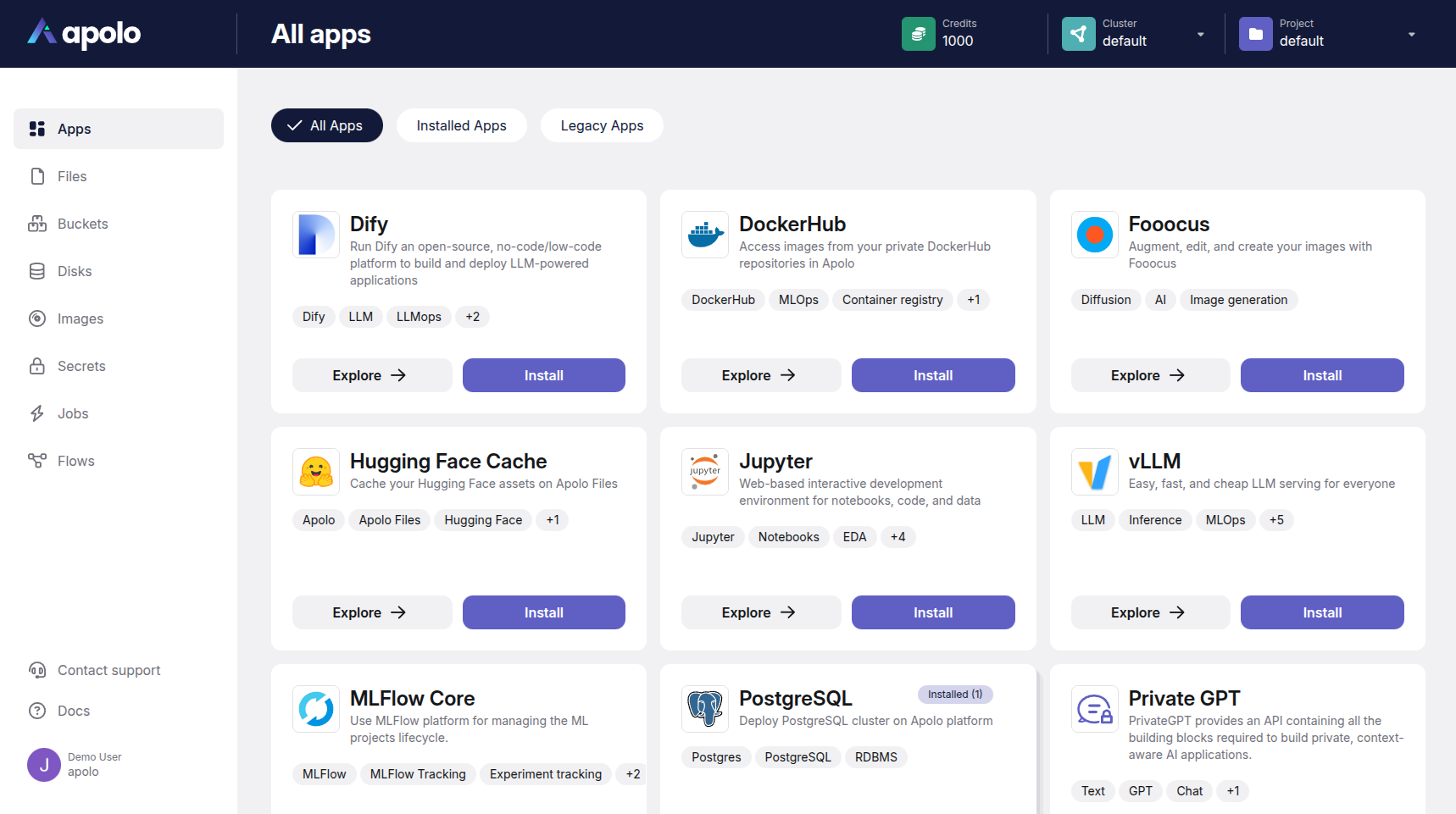 The Apolo platform provides a rich catalog of applications to support your entire MLOps lifecycle.&#x20;